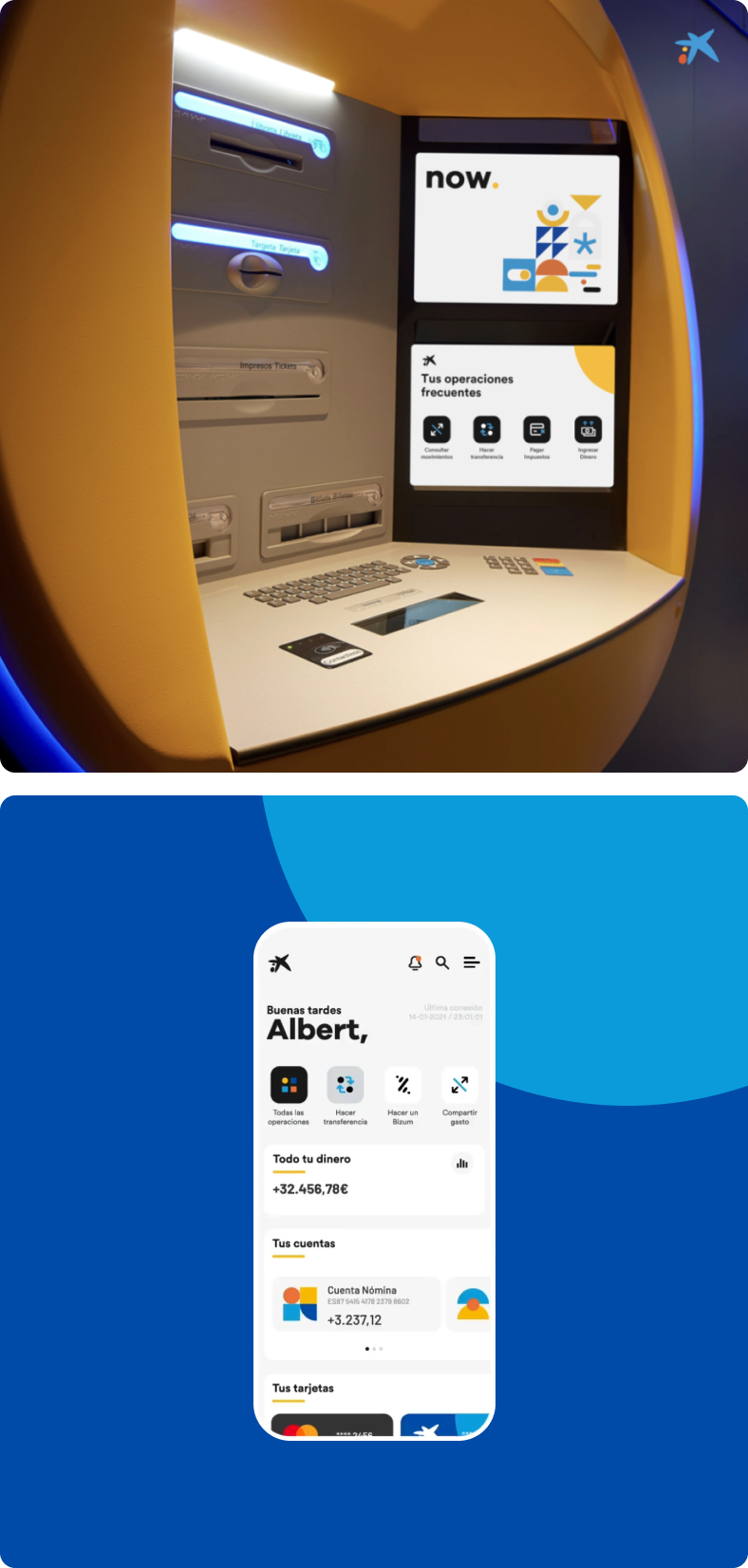 Un diseño que transmite movimiento y, sobre todo, invita a moverse. Reforzando la identidad de marca a través de anclajes visuales ya existentes y elementos reconocibles, como los propios cajeros, combinados con un storytelling innovador y atractivo para competir de tú a tú con los neobancos.